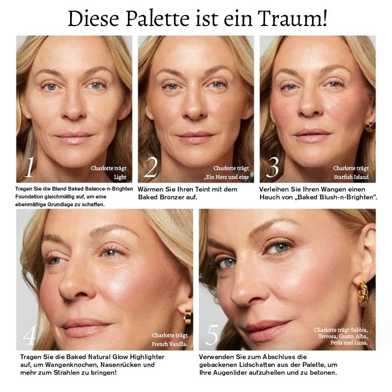 🏅 Baked Balance-n-Brighten Foundation – Beste Puder-Foundation. QVC Customer Choice Beauty Award (2024). Oprah Daily Editor’s Choice (2024). Von der Psoriasis- & Rosazea-Gesellschaft anerkannt. 🏅 Baked Blush-n-Brighten – Bester Blush. QVC Customer Choice Beauty Award (2024). 🏅 Baked Natural Glow Highlighter – Bester Highlighter. QVC Customer Choice Beauty Award (2024).